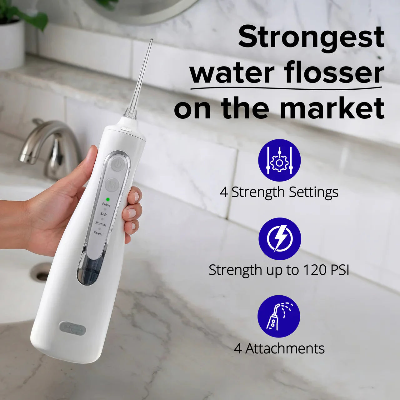 Advanced Battery Life - Battery life can lastup to 21 days in the lowest pressure mode, while mostsimilar water flosser picks can only last up to 10 days of Use.